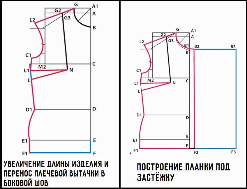- на выкройке полочки нагрудная вытачка переводится в горловину;