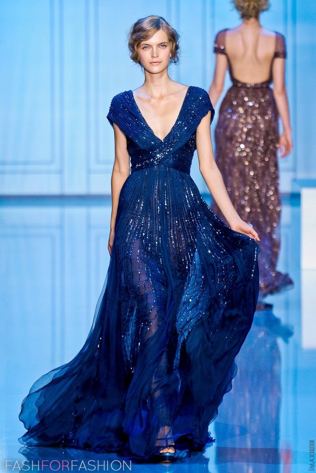 Платье с завышенной талией, где юбка начинается у бюста – именно тот фасон, который покажет красоту и насыщенность синего цвета.