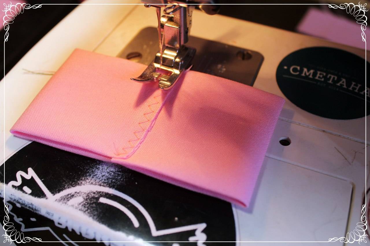 Полоску для ремешка сгибаем пополам вдоль длинной стороны, прострачиваем.