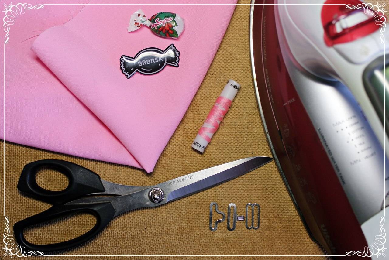 В процессе работы понадобятся ножницы, мелки или фломастеры для разметки материала, комплект игл. Если швейной машины нет, можно выполнить работу вручную. Для получения качественного результата применяются потайные подшивочные стежки («вспушка», «назад иглой»). Подойдут обычные сметочные швы с двойным прохождением.
