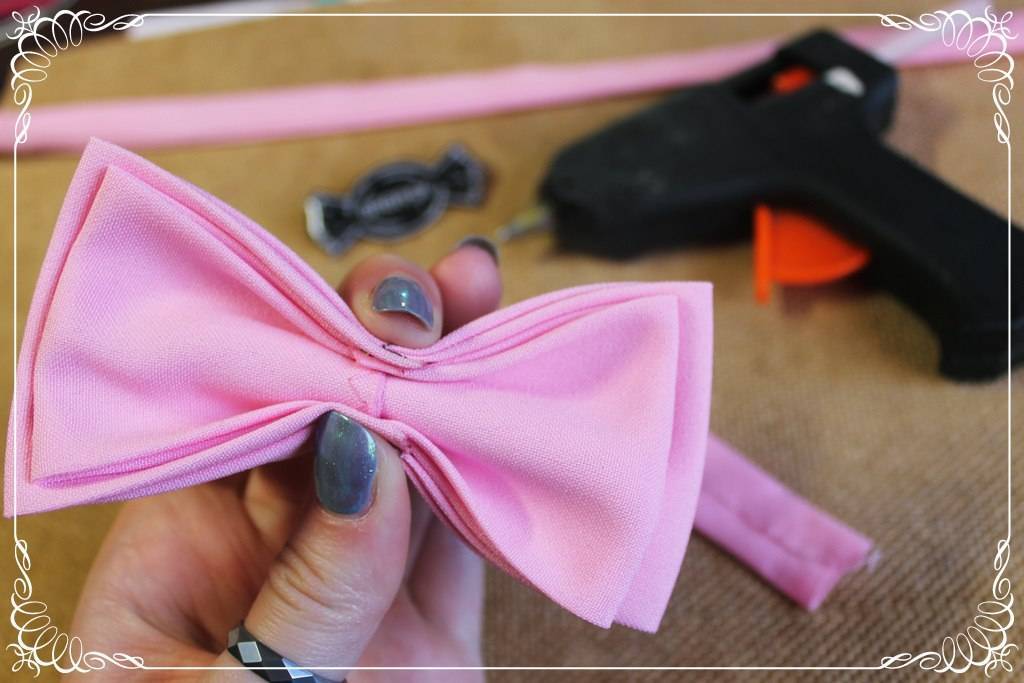 Оборачиваем бабочку по центру перемычкой, фиксируем её горячим клеем.