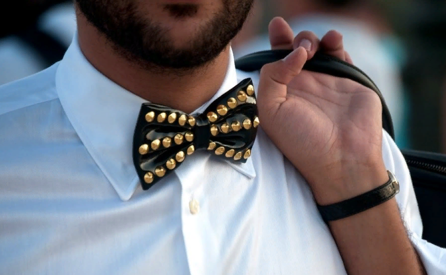 - Галстук-бабочка – эта деталь давно не ассоциируется со смокингом, сегодня можно подобрать аксессуар разных оттенков, который гармонично впишется в образ.