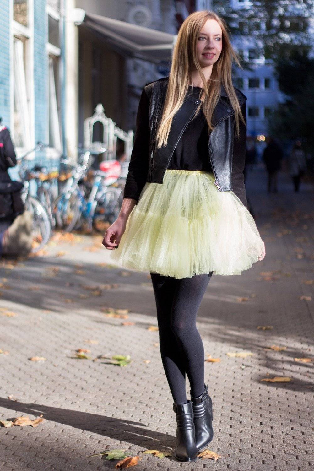 Летом фатиновые юбки носят с туфлями на низком ходу и кедами. Чтобы не было жарко — топы, майки, футболки с принтами. Зимой комбинируют с вязаными кофтами, кардиганами и жакетами. Дополнив украшениями, которые по фактуре или цвету сочетаются с изделием, создают гармоничные луки.