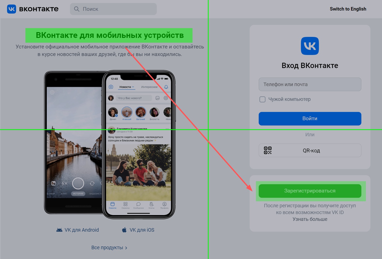 Пример диаграммы Гутенберга в действии — оформление главной страницы социальной сети «ВКонтакте».