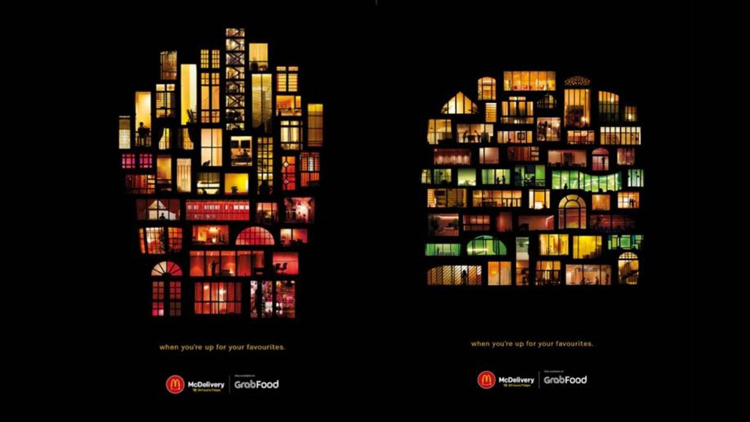 В рекламной кампании для McDonald’s креативное агентство DDB Singapore использует стремление человека искать знакомые образы в хаосеИзображение: McDonald’s / GrabFood