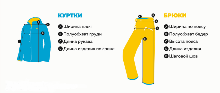 При измерениях стоит прибавлять к каждому показателю 1 см, так как под горнолыжный костюм Вы будете одевать термобельё и прочую одежду.