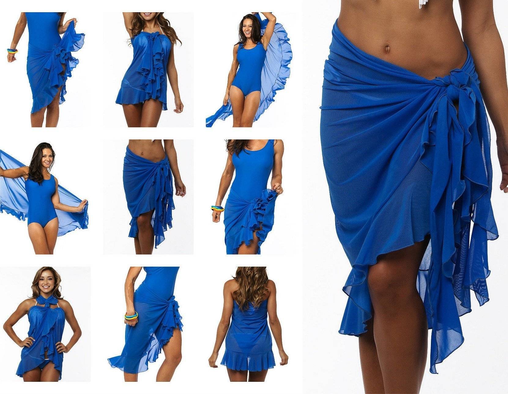 Из обычного платка можно сделать не только юбку, но и самое настоящее платье. Можно создать «костюм», который будет повторять контуры купальника. Некоторые девушки используют такие схемы завязывания парео не только на пляже.