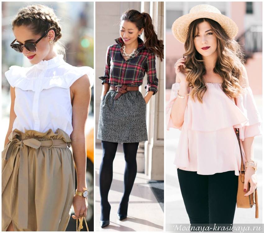 - Блузы с рюшами, оборками, оригинальными нагрудными карманами.