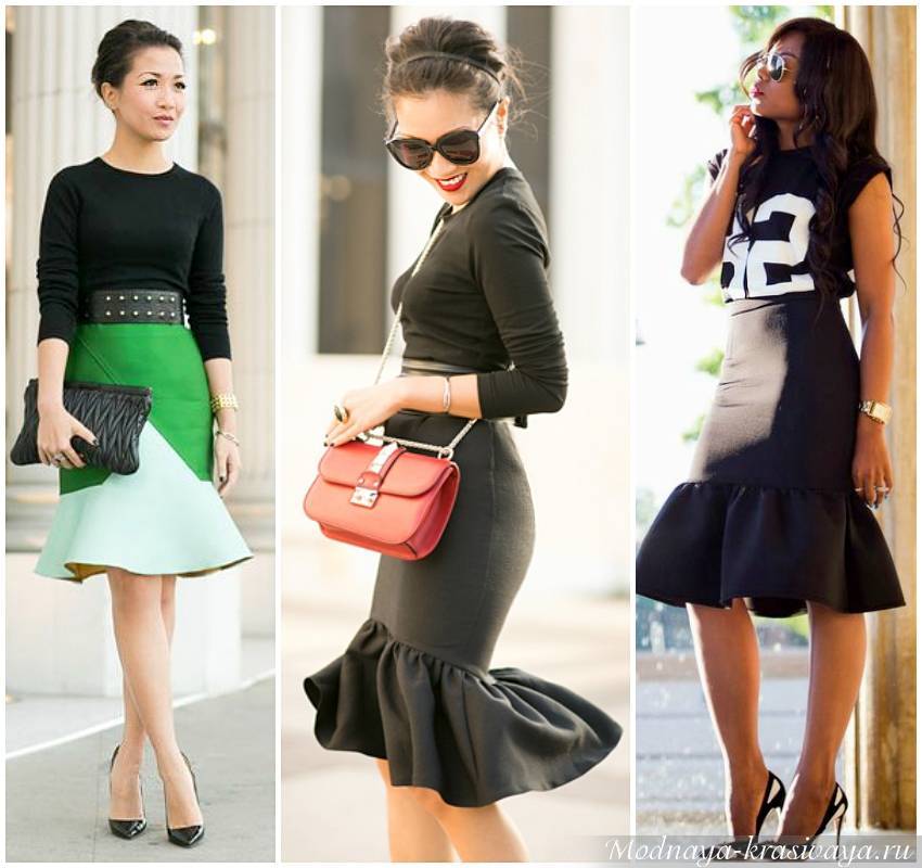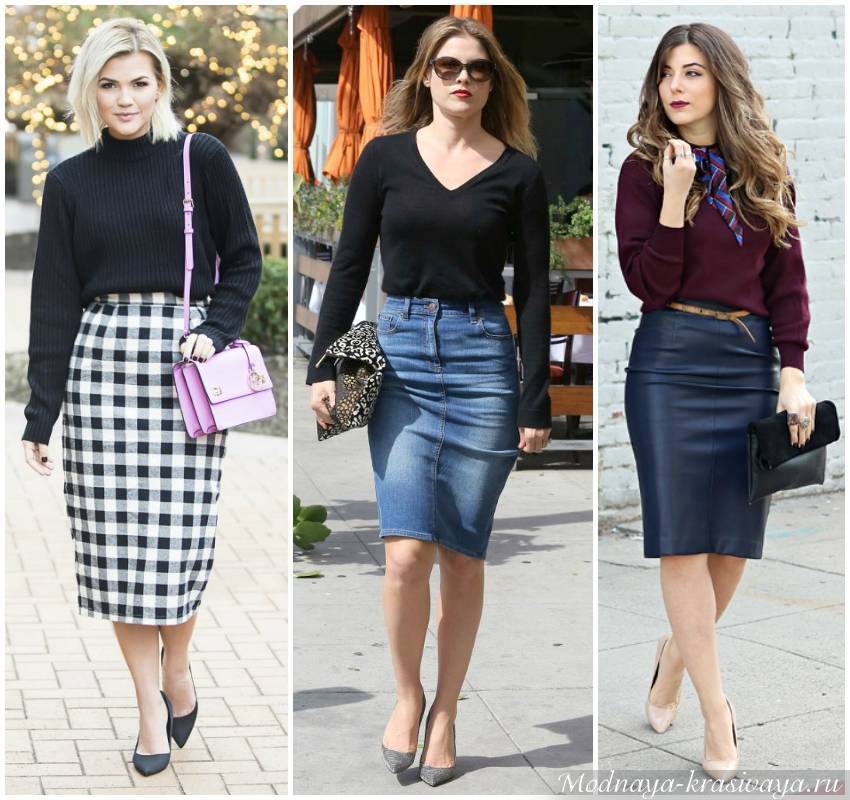 Обходите стороной прямые модели, «татьянки» в обильную сборку, складки, в крайнем случае – застроченные до линии бедер. Стройным девушкам подойдет юбка-карандаш с завышенной талией.