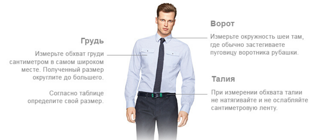 На многих этикетках указывается только обхват шеи, который и считается размером мужской сорочки. Если замер выходит с десятыми, то результат округляется в сторону увеличения.