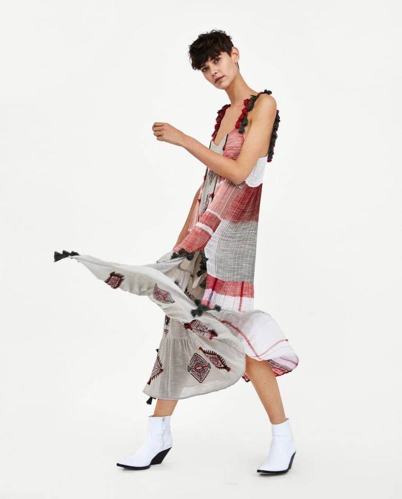 Летние летящие наряды вы также можете свободно сочетать не только с босоножками, но и с кедами или же кроссовками, а также балетками. Для зимних моделей той же длины можно подобрать и сапоги, однако нужно учитывать, что их голенище должно заканчиваться на 15 сантиметров ниже колена.