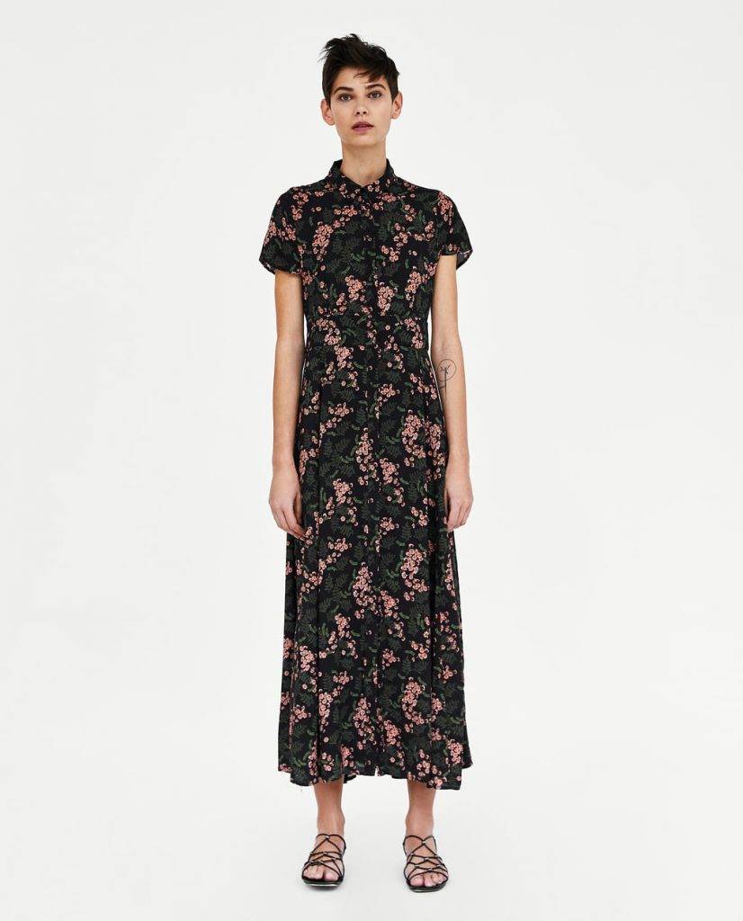 К платью с цветочным или другим активным принтом можно подбирать обувь, которая повторяет один из оттенков мотива. Можно придерживаться и фона узора – например, если он темный, девушка просто может подобрать черную обувь.