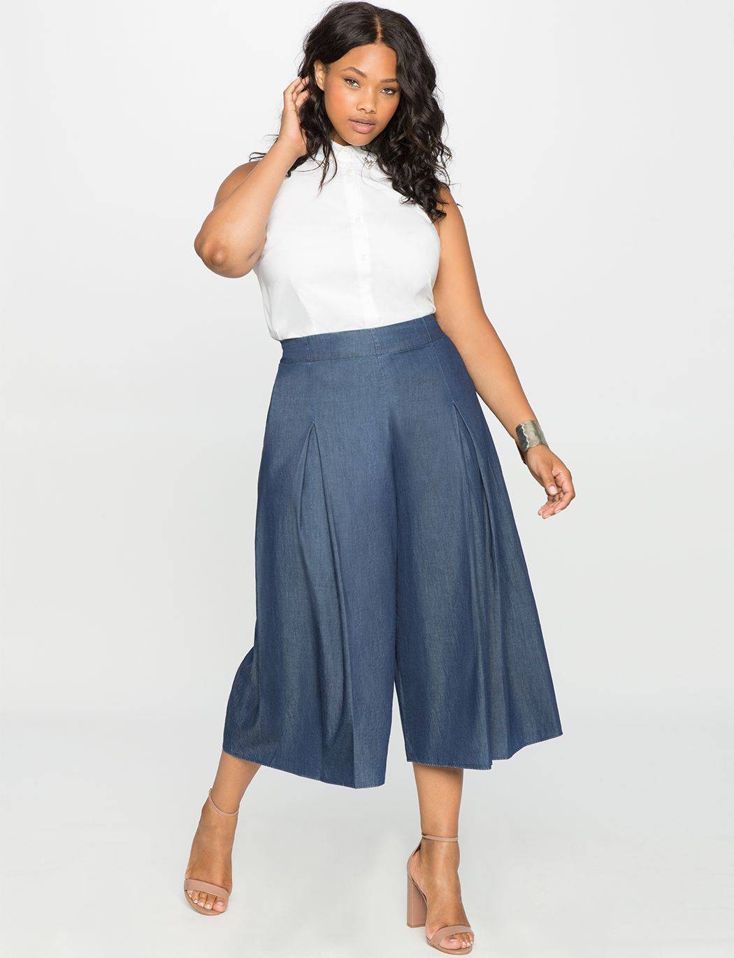 Стилисты советуют надевать юбку-брюки полным женщинам, поскольку модель подчеркивает плюсы и скрывает минусы в области живота и бедер.