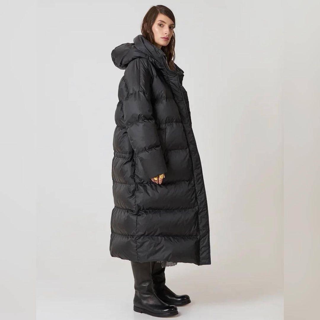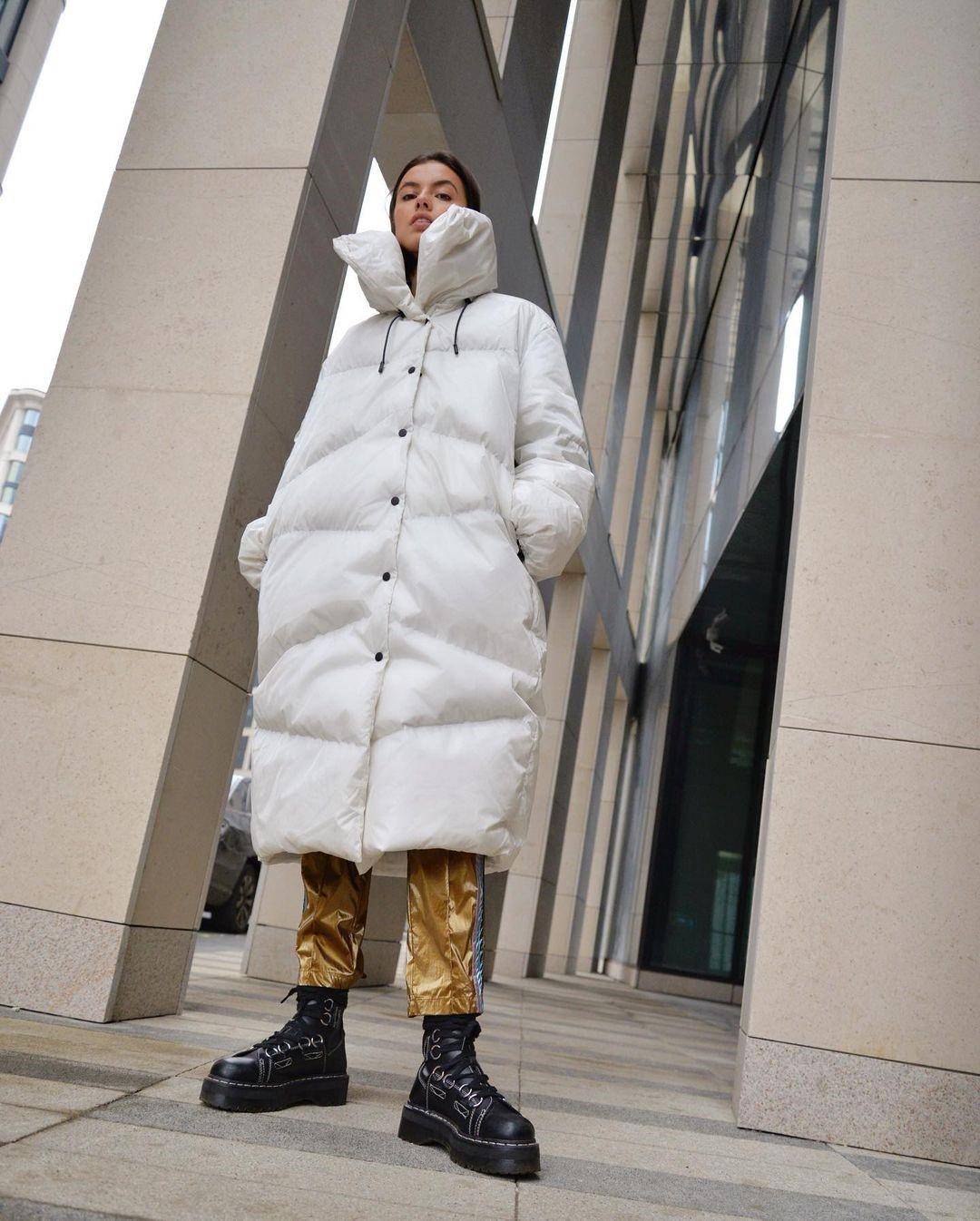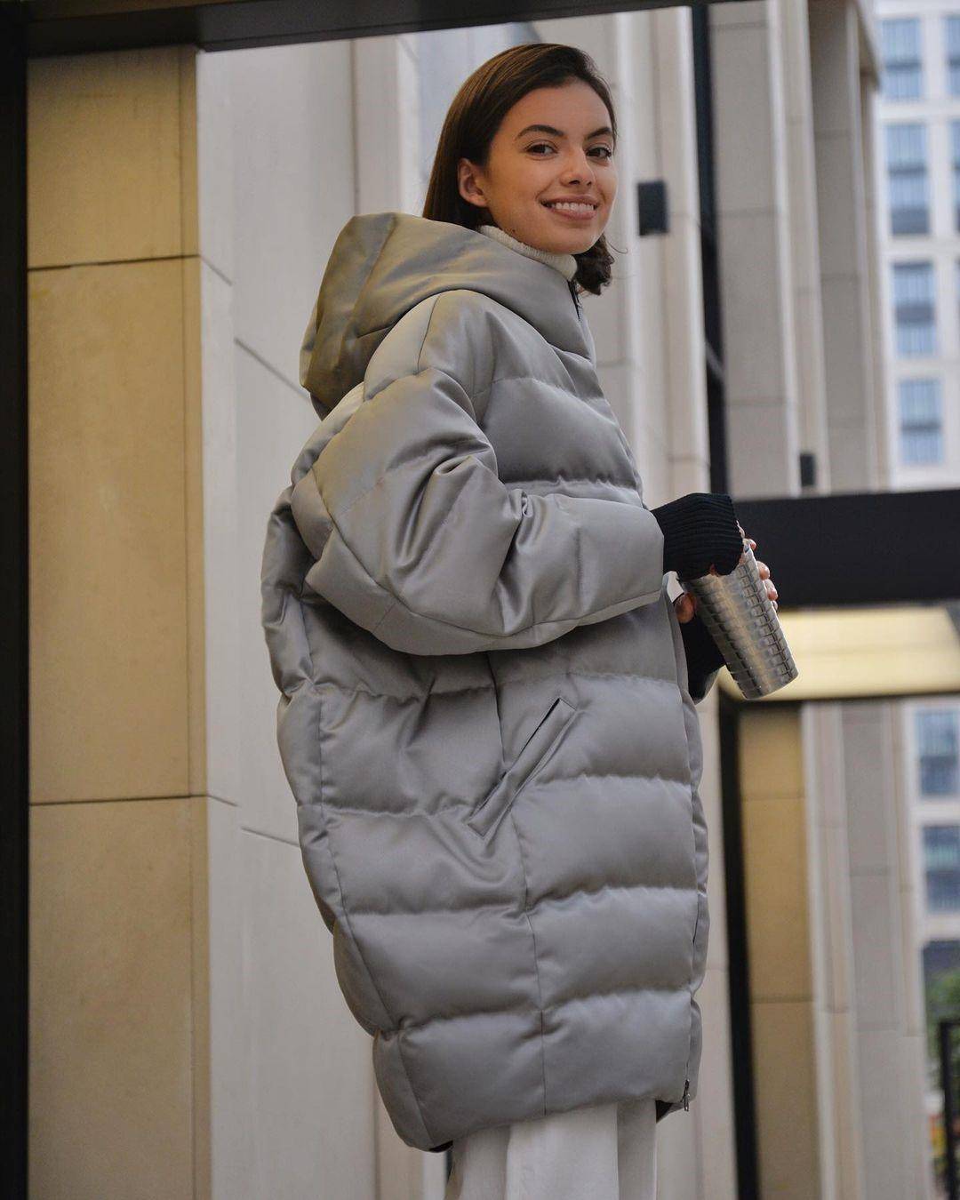 Ещё один вариант для тех, кто хочет спрятаться и от холода, и от посторонних глаз – пуховик оверсайз. Объёмная модель скроет все нюансы быстро меняющейся фигуры и не стеснит движений. Отличным решением будет приобрести модель оверсайз с удлинёнными рукавами – так вы одновременно приобретёте практичную вещь и сделаете реверанс в сторону моды.