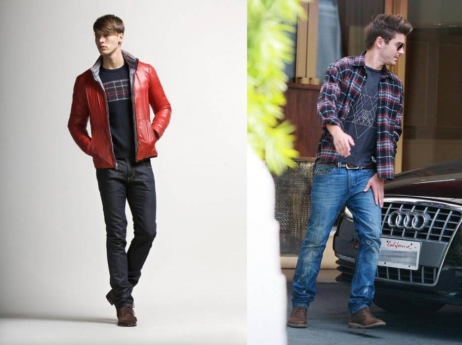 Пожалуй, самые неформальные из всех штанов (шорты в расчёт не берём). Вариантов, как правильно должны сидеть джинсы, множество. В основном, джинсы носят еще ниже, нежели брюки чинос. На большинстве людей, хорошо выглядят немного зауженные к низу джинсы. Они должны слегка облегать, если мы говорим о моде и красоте. Быть свободными, если мы говорим о комфорте.