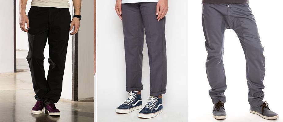 Хочу обратить ваше внимание на то, что чем массивнее ваша обувь, тем длиннее должны быть штанины, чем легче обувь, тем более зауженные и укороченные модели вы можете надеть