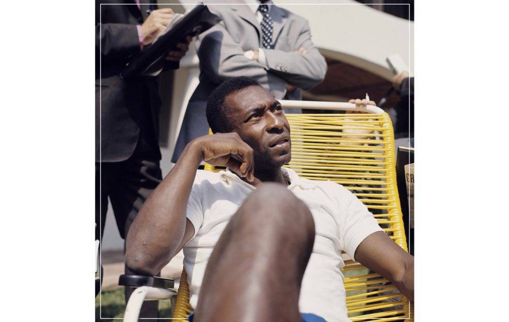 Но у него также сложился стиль, как показывает эта фотография во время его отдыха у бассейна отеля. Что отличает этот снимок, так это то, что, хотя он был снят в какой-то момент во время Чемпионата мира, еще не совсем ясно. Это могло быть на полпути во время групповых этапов. Это могло быть накануне финала. Насколько мы знаем, он мог бы просто выиграть его. Непринужденному поведению Пеле помогла, конечно же, эта крутая рубашка поло из хлопка пике.