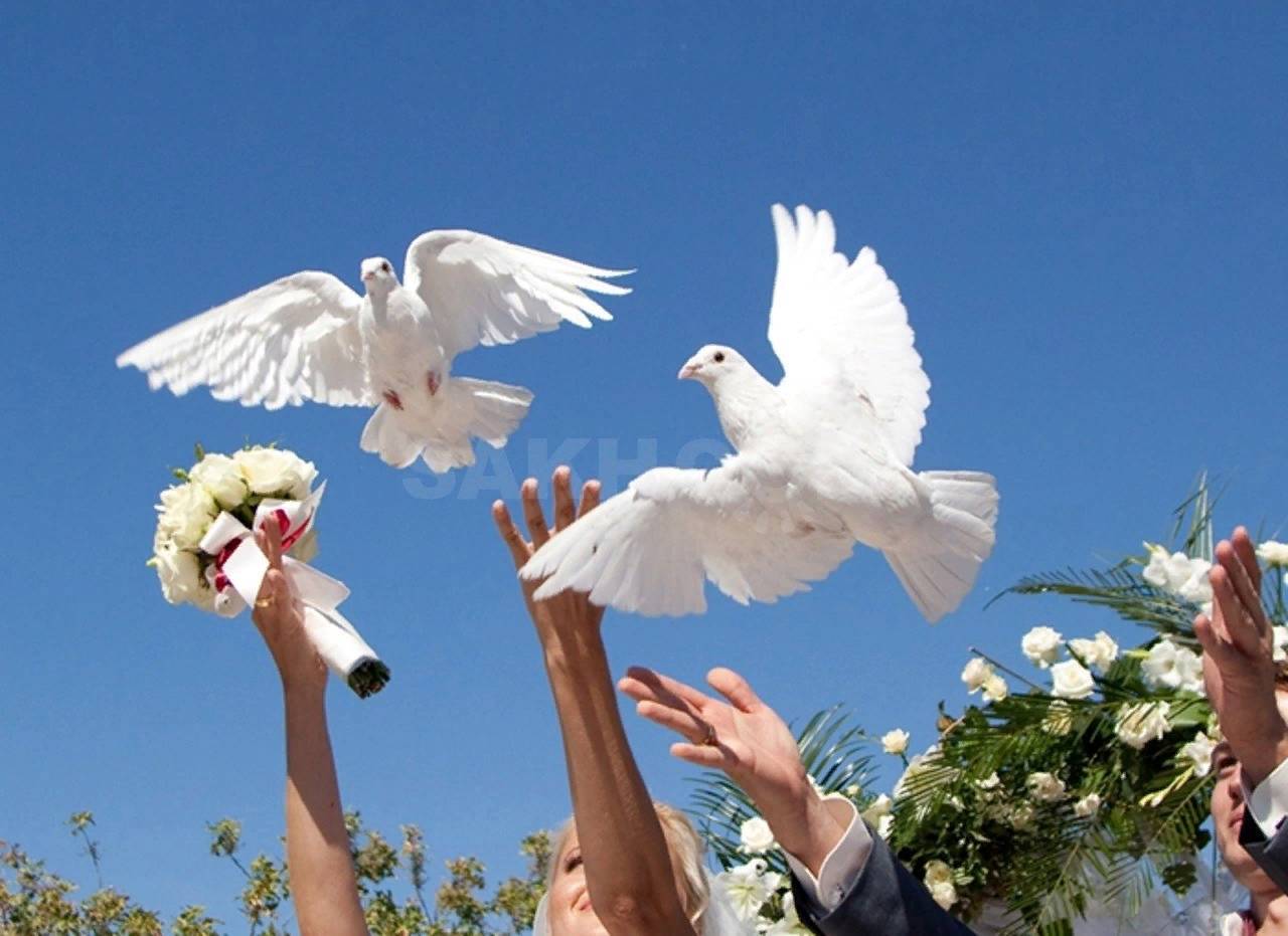 Запуск голубей. Птицы символизируют молодоженов, которые должны вылететь из родительского гнезда, чтобы свить собственное.