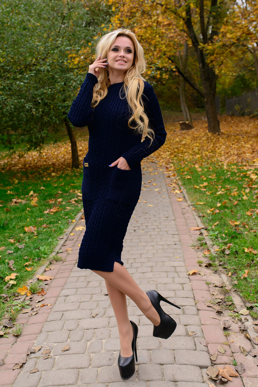Длина. Лучше всего, чтобы вязаное платье было до колен. Что демонстрирует наличие красивых ног и визуально увеличивает рост. Округлый вырез дополнит стильный образ.