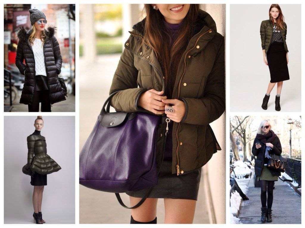 Короткие пуховики хорошо сочетаются с короткими и длинными юбками – нужен только повод
