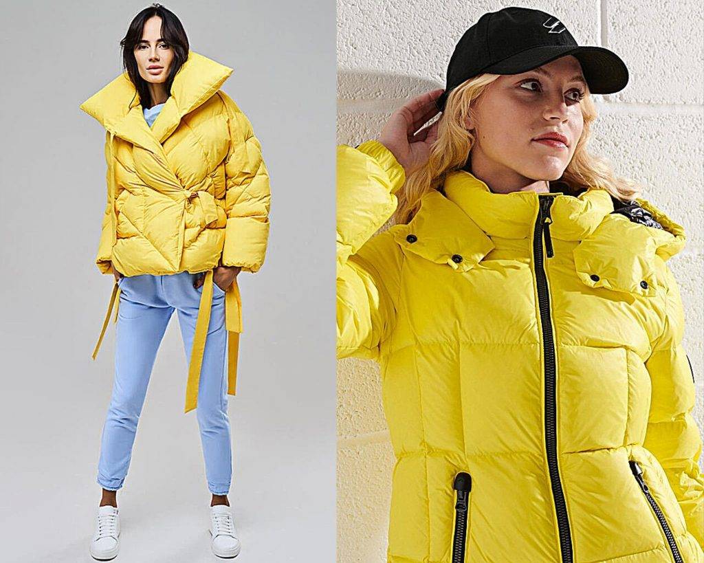 Желтый – очень активный цвет, который требует тщательного подбора аксессуаров. Чтобы не быть светофором, надо отказаться от зелёных, синих, розовых, красных вещей. Гармоничные сочетания: с одеждой темно-серых, коричневых и черных оттенков. Особенно хороший микс: желтый пуховик плюс голубые джинсы и светлые кроссы.