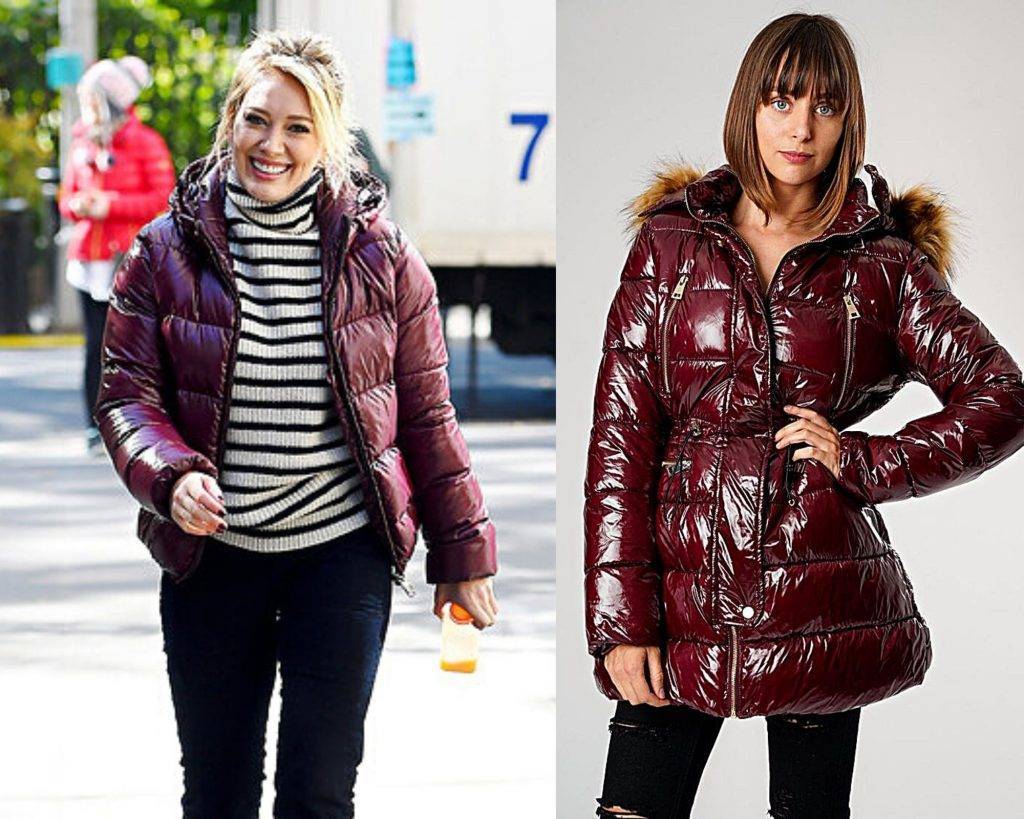 Если ваш любимый длинный пуховик из блестящей глянцевой ткани, то можно выбрать немного ярких деталей в виде шапочки, сумочки, массивных дутышей. Они добавят «космического» эффекта. Цветные плотные колготки, тон в тон повторяющие оттенок верхней одежды, еще и усилят его.