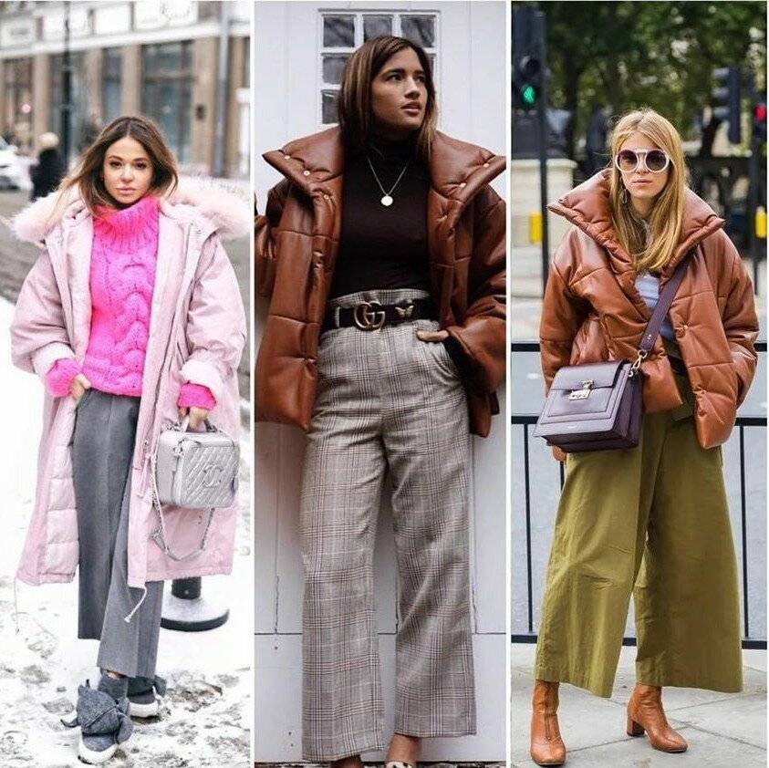 В своё время кюлоты – короткие брюки до колен с широченными брючинами – произвели переворот в мире моды. До сих пор популярны. Иногда у них есть пуговица под коленом. Мы с удовольствием носим их и летом и зимой. Дутые пуховики хорошо комбинируются с кюлотами. С какими моделями лучше их носить? Во-первых: с укороченными до середины бедра штанинами. Чтобы образ смотрелся актуально, пуховик можно подпоясать и визуально удлинить ноги.