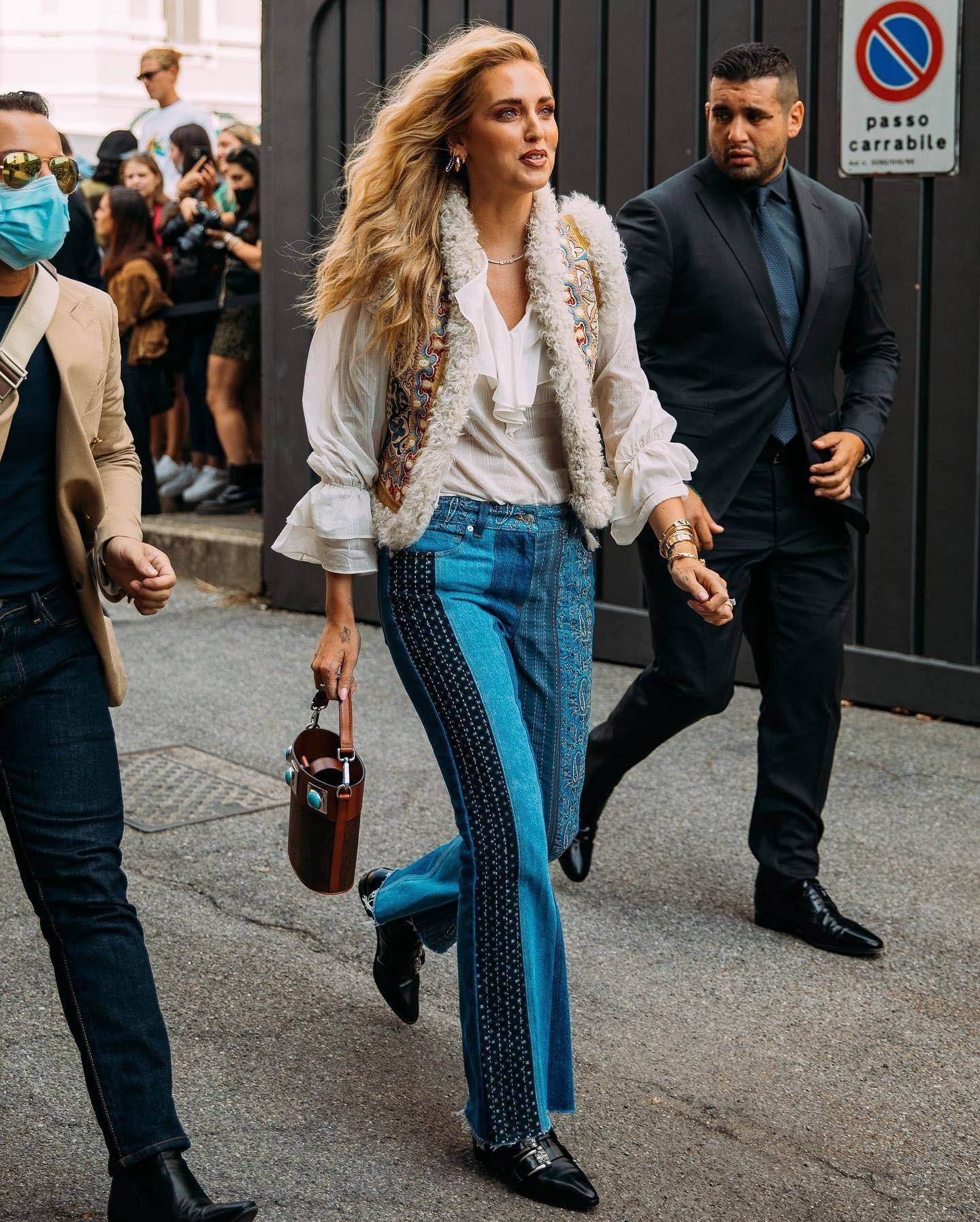 Джинсы, расклешенные от колен или от бедра, носят с короткими или с удлиненными моделями меховых жилетов. Креативно смотрятся штаны-клеш с безрукавкой по пояс.