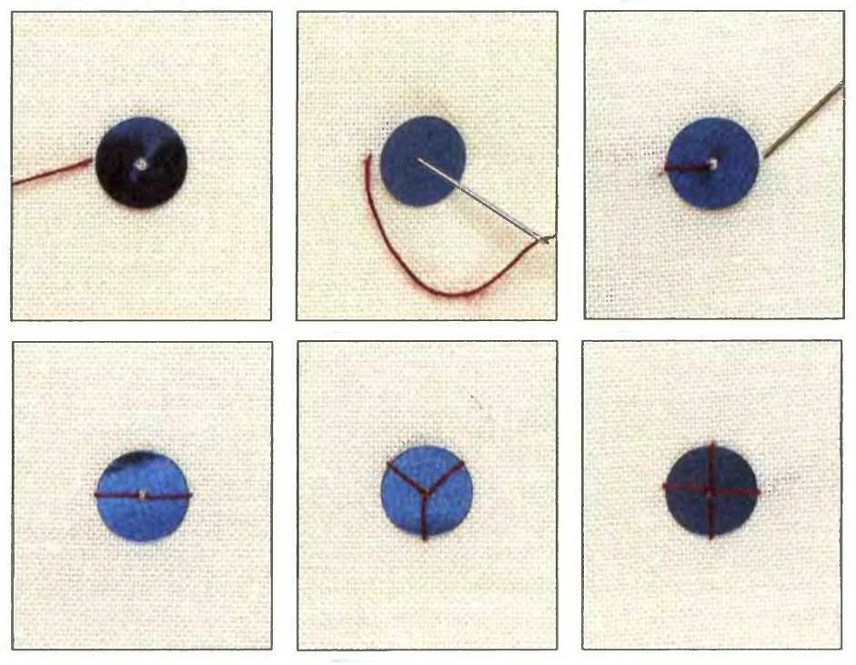Таким образом делают два стежка, создавая «диаметр» имеющейся окружности или 4 стежка «крестиком». Этот способ очень кропотливый.