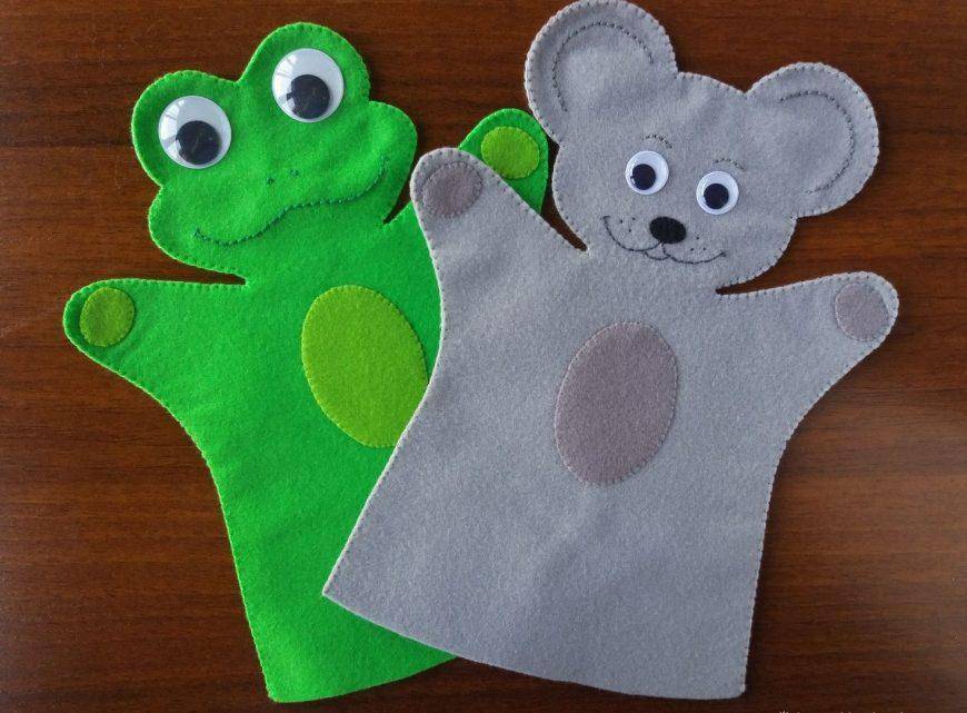 Несмотря на то что лягушка участвует не во всех народных сказках, с ее участием есть также немало историй: например, «Теремок», «Царевна-лягушка», «Лягушка-путешественница». Логично предположить, что такая фигурка должна быть зеленого цвета, а глазки для лягушки лучше сделать из крупных выпуклых пуговиц. Если предполагается разыгрывать сказку «Царевна-лягушка», понадобится также небольшая корона из фольги.