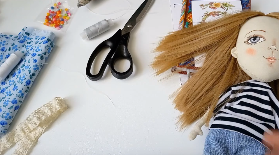 - ткань для изготовления тельца, лица и конечностей куколки — это может быть ткань, пряжа, капрон и даже бумага (некоторые делают головку куклы из папье-маше, а тельце из ткани);