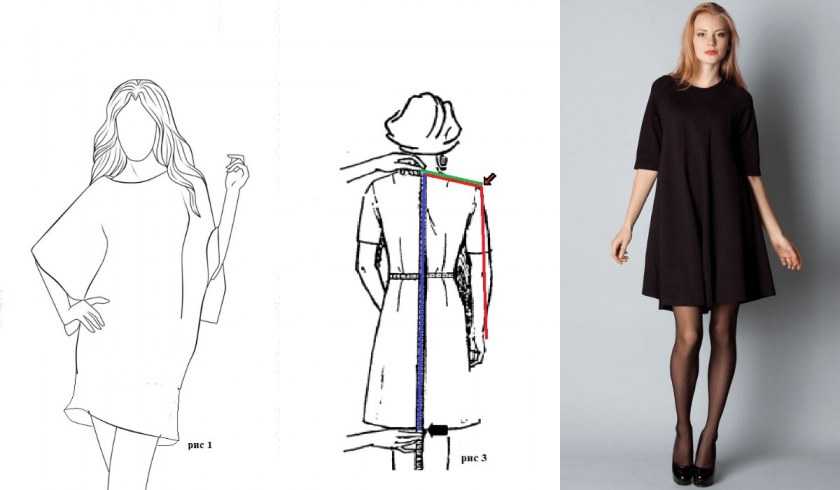 - на готовом рисунке отмечаем длину платья, перед этим не забываем снимать мерки;