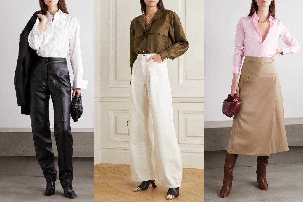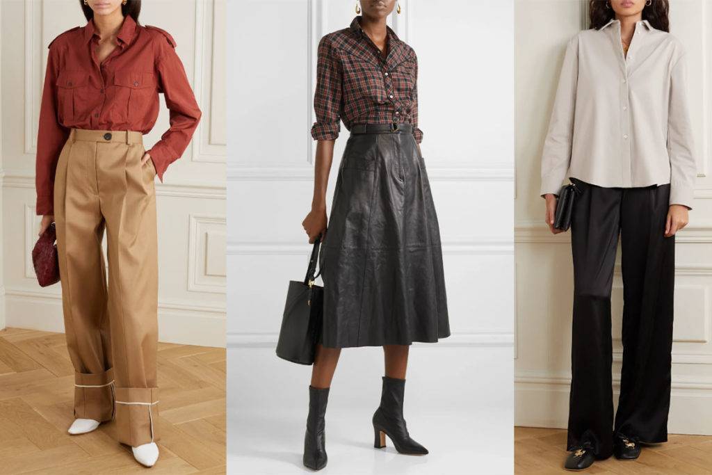 В целом, можно выбрать рубашку и для другого типа фигуры, но нужно играть с объемом – для груши подойдет белая укороченная рубашка оверсайз, а для перевернутого треугольника подойдут полуприталенные варианты и обязательно скомбинированные с массивным низом виде брюк или юбки.