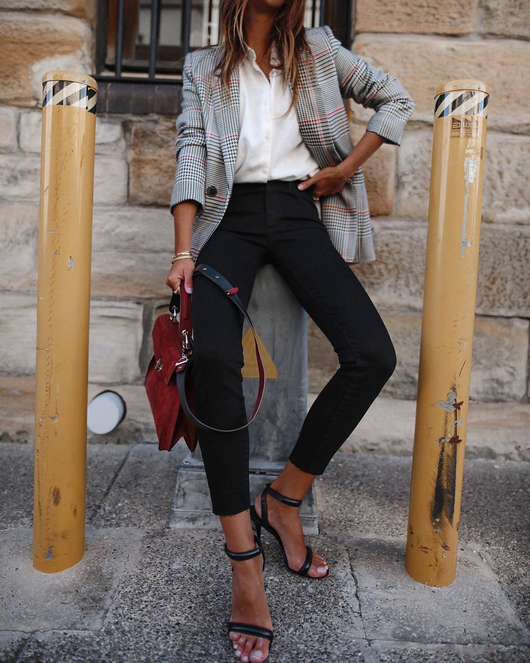 - Для посещения кафе, клуба и работы в офисе неплохим вариантом будет белая рубашка с блейзером. Для дополнения стиля на шею можно повязать платок под цвет блейзера или контрастный ему.