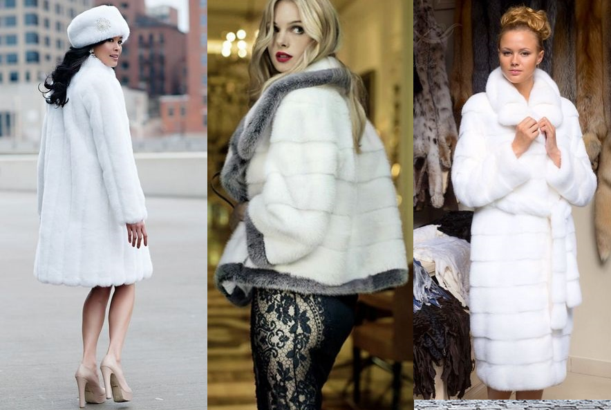 Белая шуба привлекает повышенное внимание со стороны окружающих и категорически не допускает соседства с потёртыми, несвежими, дешёвыми аксессуарами и деталями туалета
