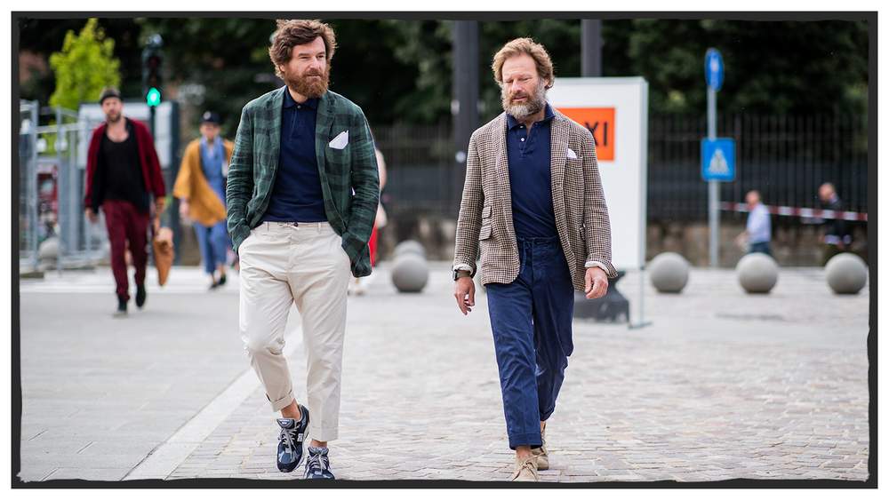 Изображенные на фото мужчины – Карлос Кастильо и Хорхе Наварес, основатели бренда Man 1924. Они отлично демонстрируют, как легко и стильно выглядит стиль кэжуал мирового класса. Хорхе Наварес подчеркивает свой спортивный вид кроссовками на шнурках и пиджаком спортивного покроя, а также брюками из легкого натурального материала.