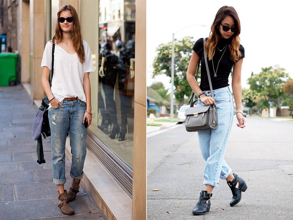 Как видно по фото, женщина, имеющая любую фигуру, может подобрать идеальную модель и носить бойфренды, не боясь испортить внешний вид.