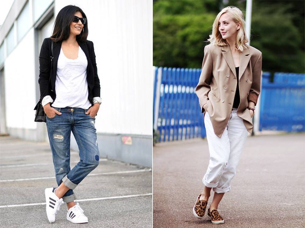 Любительницы экстремальных образов удачно сочетают даже рваные бойфренды и туфли с анималистическим принтом. Хотя модные критики считают расцветки зебры, леопарда или змеи слишком «тяжелыми» для теплого времени года, правильно подобранные бойфренды позволяют носить их даже летом.