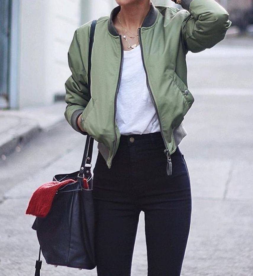Бомбер в стиле милитари придает вам мужественность и индивидуальность. Такие модели хорошо сочетаются с гардеробом этого стиля, но стоит отметить, что вы не должны выглядеть как солдат, поэтому стоит разбавлять образ однотонными свитерами, пуловерами, футболками, джинсами.