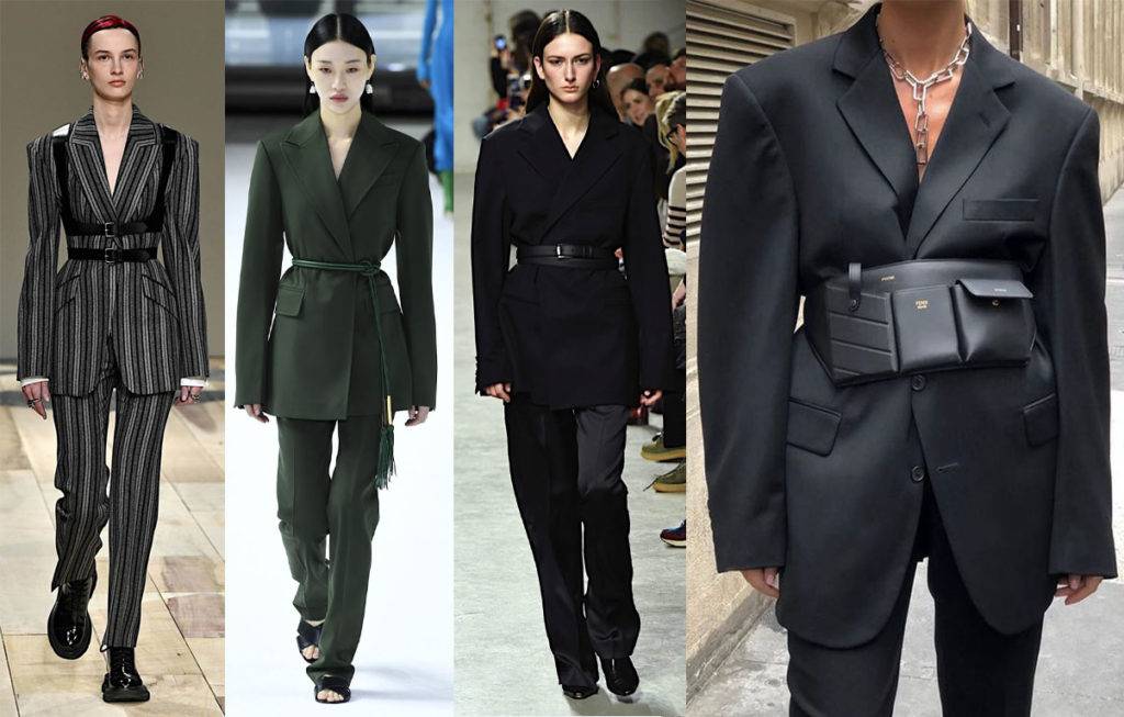 Пояс – тренд сезона осень-зима 2021-2022. Он является частью декора даже пиджаков с прямым силуэтом. Пояса должны быть кожаные либо из базовой ткани пиджака, простые и достаточно широкие, в тон или контрастные пиджаку.