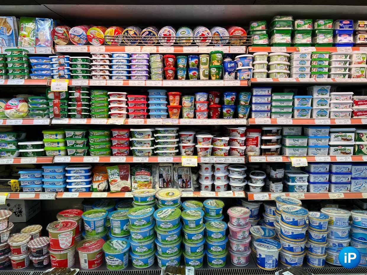 В продуктовых большинство сладких снеков ощутимо дешевле, чем в России, мясо стоит столько же, нет сметаны и больших бутылок минералки, зато полки ломятся от доступных сыров, вкусного сливочного масла и ореховых смесей всех видов и размеров.