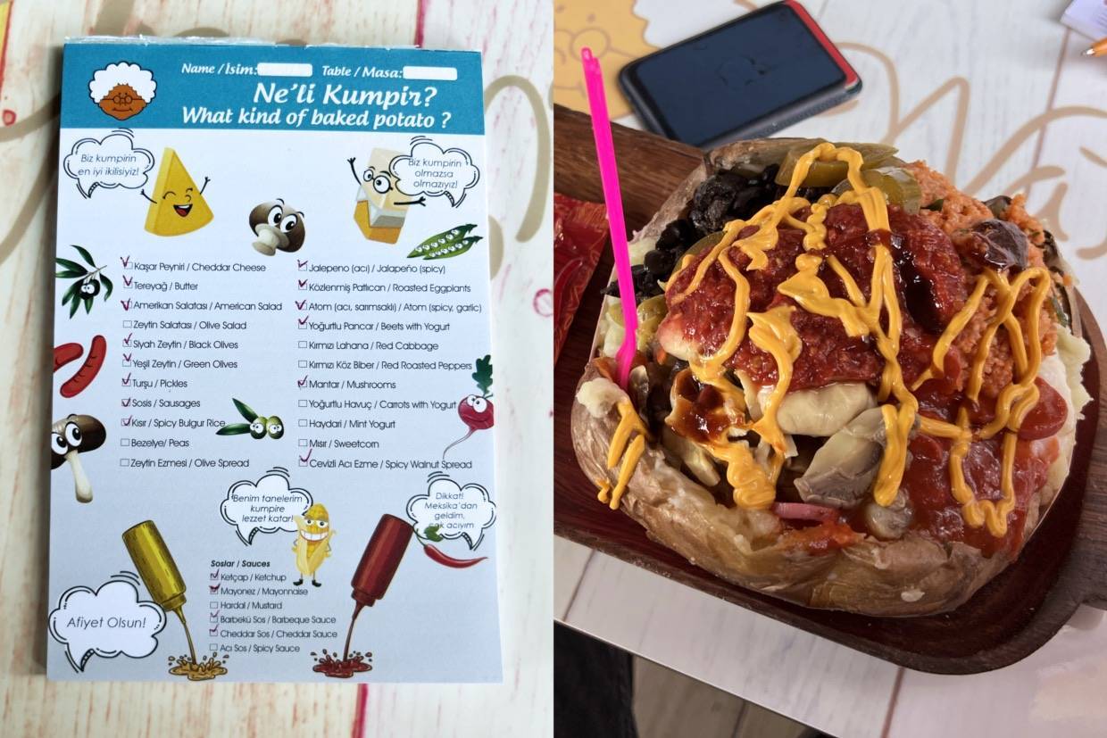 Вафля стоит 65 лир (215 рублей), картофель 75 лир (250 рублей) вне зависимости от того, что туда добавляем. В среднем за двоих отдавал 750 рублей.