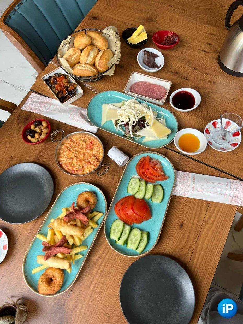 Здесь я попробовал самый крупный турецкий завтрак на двоих за 200 лир, с которым меня изначально познакомили друзья. Перечислять всё не буду, но уточню, что хватило бы минимум на троих, много чего завернул с собой. Сильнее всего запомнилось то, что количество вкусного сыра по стоимости перевалило через стоимость обеда, если бы покупал его в Москве.