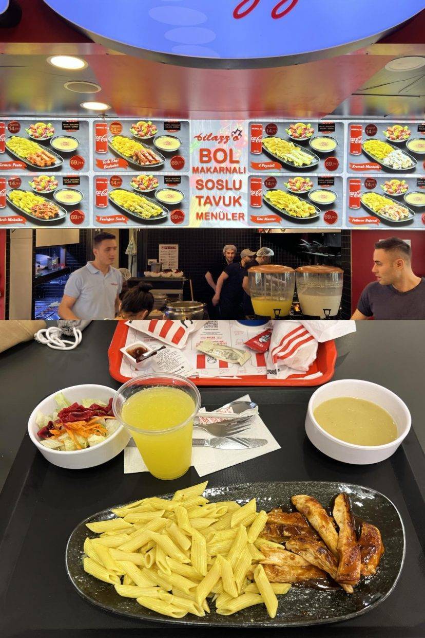 То, что мне подали, на плов мало похоже. Но соотношение цена-качество отличное. За 65 лир (215 рублей) вам приносят большую тарелку вкусного риса с маслом и пятью добавками: овощным салатом, куриным филе, говяжьими мясом, бобами в соусе и карамелизованной печенью, а вдобавок к этому дают 200 мл вкусного айрана, тут это местный популярный напиток.