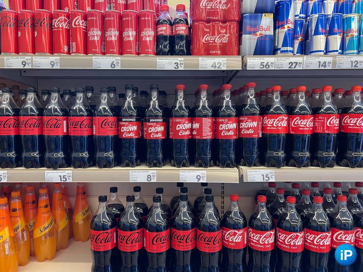 Привычной нам минералки почти нет. Российские полки заставлены несладкой газированной водой разных видов, а в Турции либо целебные воды в бутылках объёмом 1 литр за 66 рублей, либо в стекле 0,2 л за 20 рублей. Семейного размера полуторалитровых не видел.