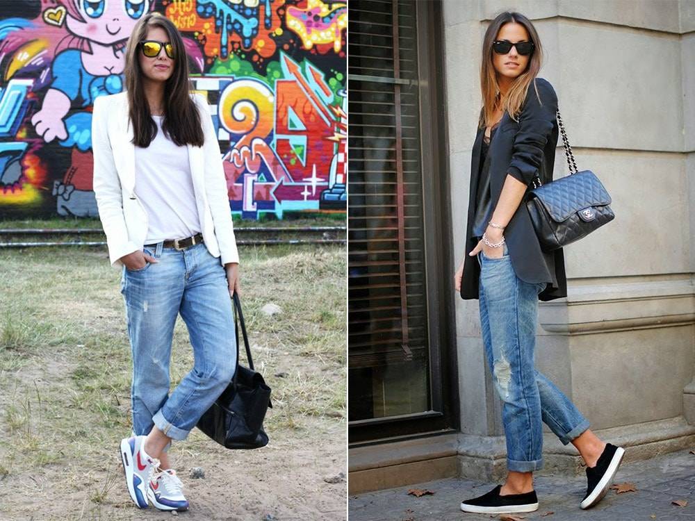 Джинсы бойфренды с кроссовками и кедами