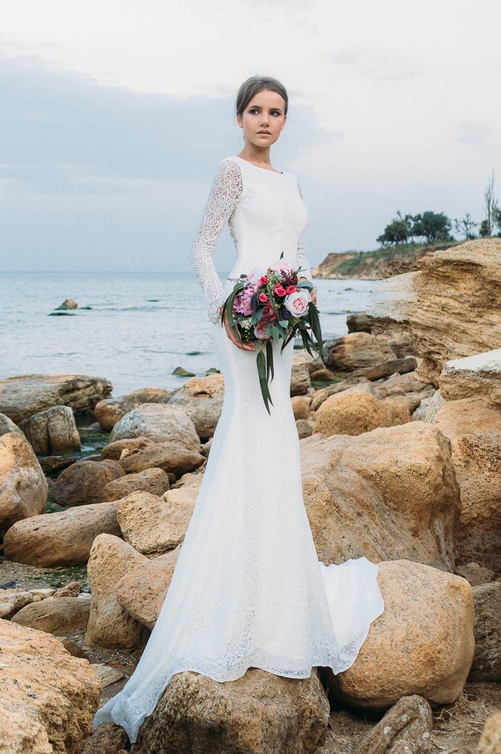 «Русалка» с рукавами выглядит немного скромнее и сдержаннее, но от этого не теряет своей женственности, наоборот, придает образу изюминку и загадочность.