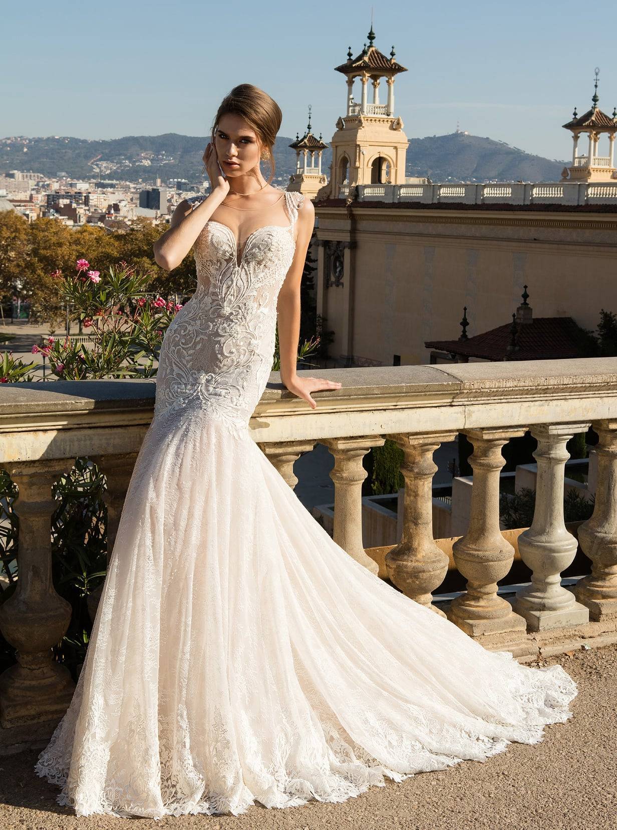 Шлейф подходит к данному фасону просто превосходно. Надев такое свадебное платье, Вы будете выглядеть невероятно шикарно и по-королевски.