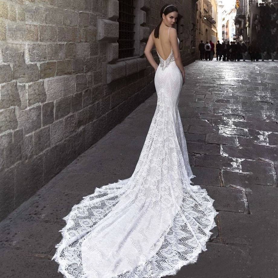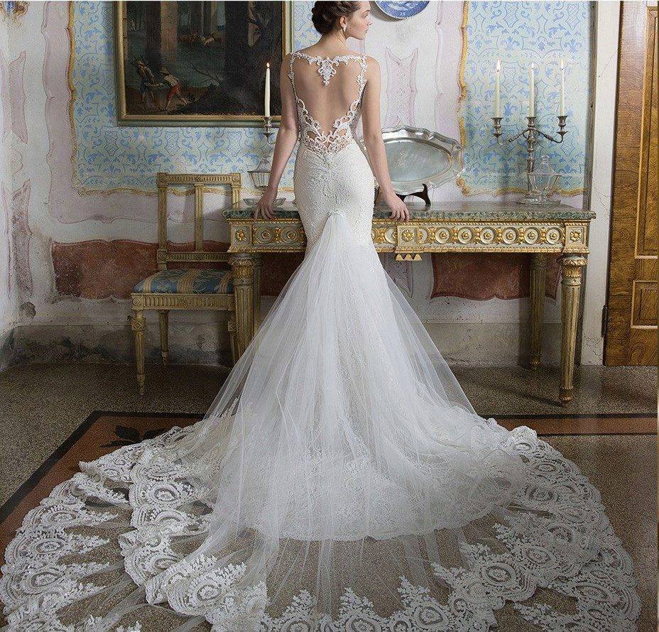 Пожалуй, самый соблазнительный вариант свадебного платья русалки – открытая спинка.