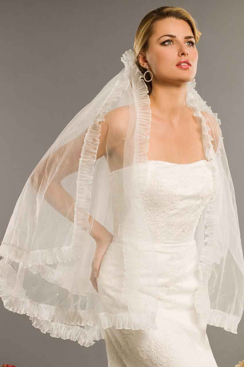 Понятие короткой фаты довольно обширно. Каждый воспринимает ее по-своему. Однако существуют несколько абсолютно четких вариаций длины, подходящих к различным образам и фасонам свадебных платьев: